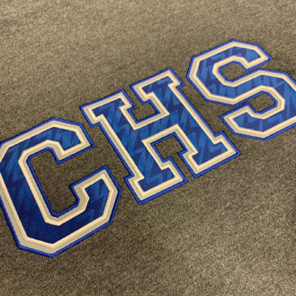 Applique is an embroidery process where fabric is cut and sewn into designs/logos to give the item a unique look. In the meantime, this method reduces the stitch count of a design. We are fortunate to have a commercial bridge laser that allows up to 30 garments to cut and apply applique at the same time. This look is very popular with colleges and universities, and it can be used to make unique commercial logos. This process works on most garments, including caps.
