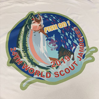 Sublimation is a process where special ink is applied to a light color synthetic garment and then heated. The ink goes into the fabric and presents a vibrant color image. This process is very popular for short run/high color images in the athletic sports area. For example, most bike and soccer jerseys are sublimated during manufacturing. You can now have a full color design on orders that are as little as one shirt. Please note that this process is limited to white or light color polyester garments. Check with our customer service department for recommended garments.