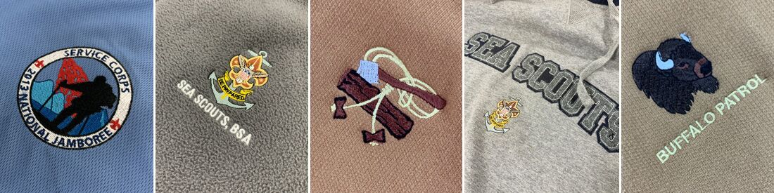 Embroidery is a great way to express yourself or your council! Whether you are looking for a professional look for your staff or a tone-on-tone logo for that subtle recognition, we have an option that will work for you. The most popular placement is left chest application, but we can also run jumbo size designs (14” x 14”). Almost anything can be embroidered – even heavy weight garments like Carhartt jackets.